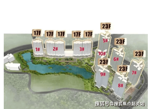 🏡 规划 9 栋住宅(含 6 栋塔楼、3 栋板楼),板楼仅 17 层,塔楼 23 层,所有建筑沿湖布局,80% 以上户型可南向望湖,实现 “推窗见湖、出门赏林” 的诗意生活。