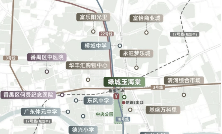 项目为地铁上盖住宅,无缝接驳番禺广场站E出口,汇聚3号线、18号线、22号线及规划17号线,实现高效交通网络覆盖。18号线和22号线为高速地铁,30分钟直达珠江新城、琶洲及南沙横沥等核心区域,自驾可通过亚运大道、番禺大道快速抵达全城,但高峰时段番禺大道可能存在拥堵。地铁上盖优势使居民步行即可通达地铁站,结合高密度轨道交通网络,极大提升日常通勤效率。项目交通布局兼顾自驾与公共交通需求,实现居住便利与城市连接性兼备,为家庭生活和商务出行提供高效支持。