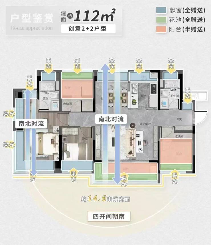 作为区府板块的舒适大四房,112㎡户型堪称“性价比之王”。约5.2m方厅设计气度不凡,待客会友从容有度,罕见的三阳台赠送的设计,进一步拓展生活尺度,观景、洗衣、储物功能分区明确,实用性拉满。主卧270°观景飘窗带来绝佳瞰江视野,傍晚时分,落日余晖洒在江面上,随手一拍都是生活美学大片。