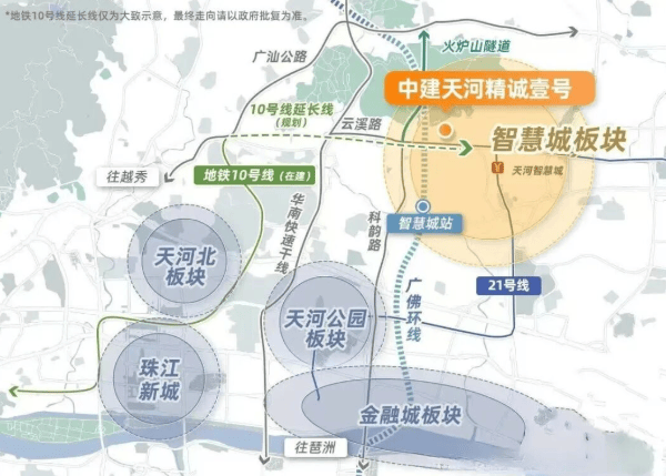 轨道交通方面,项目距离地铁21号线天河智慧城站约2公里,日常可通过电瓶车或短途接驳轻松抵达。更值得关注的是,规划中的地铁10号线与30号线将在约600米外的华观站交汇,未来建成后将进一步强化区域轨交覆盖,提升出行便捷度与资产价值。