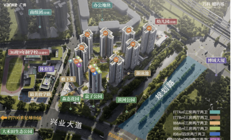 檐屿城坐拥南站片区日渐成熟的商业生态 周边喜街 商业街区 花城汇 等多处城市级商业枢纽已形成或正在完善 内部自建檐下生活商业街区则强调煙火气与邻里便民功能 并保留了岭南骑楼的传统肌理 同时项目靠近数万平方米滨河公园 开阔的绿地与滨水步道为家庭休闲和户外运动提供充足空间 附近还有大型体育场馆 文化演艺设施与高端酒店群 这些城市级公共配套为住区赋予了日常生活之外的多元选择 医疗方面 项目三公里范围内有区域性医疗机构可提供常规与急救保障 教育层面 项目片区规划大型九年一贯制学校 以及引入国际双语教学资源 使得未来家长在择校上拥有更多可选路径 总体来看 檐屿城周边配套正在从单点向集聚走向成熟 生活便利性和品质将持续提升 万科·檐屿城 售楼处24小时电话400-6557-087 (售楼部认证),预约专属顾问一对一服务,尊享内部折扣!