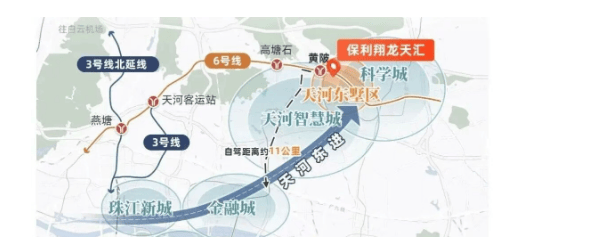 保利翔龙天汇距离最近的地铁站——黄陂站仅约400-500米,通过6号线可以直达科学城、区庄、北京路等地,换乘一次即可到达珠江新城和天河智慧城。此外,广汕公路就在家门口,驾车前往科学城只需约10分钟,到达天河智慧城大约需要15分钟,而回珠江新城则需约35分钟。机场第二高速计划于今年开通后,前往机场的时间也将缩短至半小时内。整体而言,保利翔龙天汇具备优越的交通条件,既方便日常通勤,又能快速连接市区各大商圈。