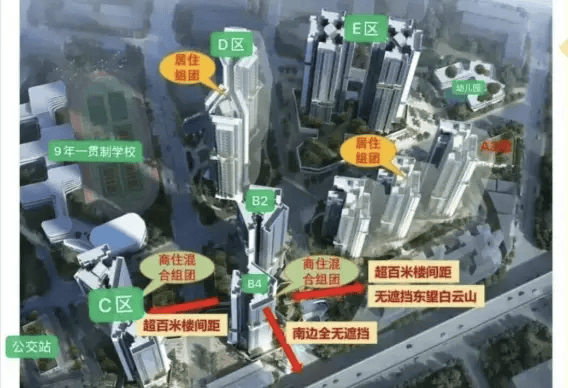 内部配建:12班幼儿园 + 48班九年一贯制学校(白云中学棠景校区),实现“目送式上学”。