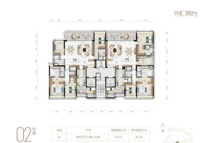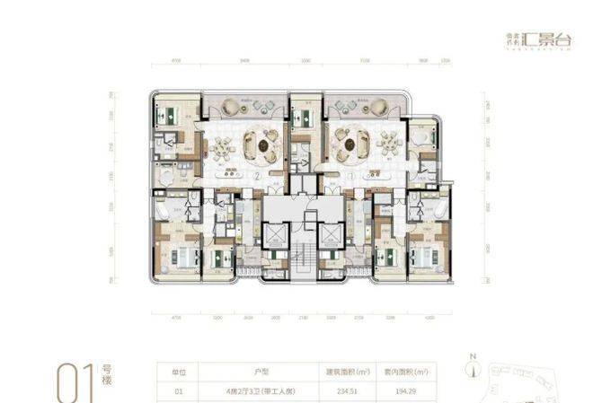 侨鑫・保利・汇景台在户型与设计方面独具匠心。项目由 14 栋 12 层小高层组成,产品涵盖 123 - 352㎡三至五房共 8 类户型,户型实用率约 82 - 84%。在外立面设计上,采用陶板外墙和铝板幕墙结合的方式,既具艺术美感,又具备节能环保、防腐蚀、耐高温等特质,陶板线条温润细腻,能打造出少见的圆弧转角和流线型元素,使外立面历久弥新。从外立面到室内空间,极致的弧形设计得以延续,室内如弧形玄关、圆角岛台、卧室弧形线条等细节,虽增加设计成本和耗材,但增强了空间流动感,精心打磨生活细节,为业主营造优雅从容的生活场域。此外,作为广州首个恒适系统科技健康豪宅,引入恒适系统,打造恒温、恒湿、恒静、恒净、恒氧、恒智的健康新生态,为业主提供舒适、健康的居住环境。