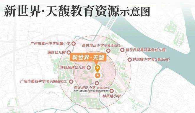教育资源同样值得一看。项目周边3公里内聚集了多所省一级学校,形成了一个优质的教育圈。步行约200米就能到达西关培正小学,这里小升初成绩长期位居荔湾前列,历史上还走出了诺贝尔奖得主崔琦、菲尔兹奖得主丘成桐等杰出校友。广州四中也在附近,初中阶段派位机会包括广雅中学等名校。项目自身还配建6班公立幼儿园,新世界此前在片区深耕多年,陆续引入和升级相关教育资源,让家庭教育需求得到较好满足。