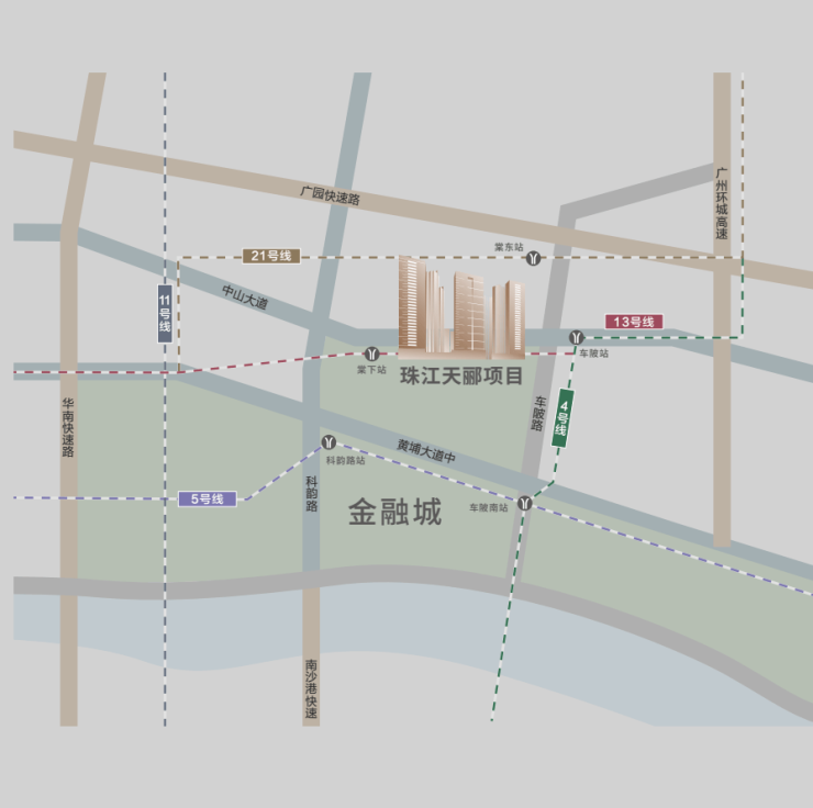 珠江天郦项目在交通规划上展现了极高的前瞻性,其最显著的优势在于紧邻地铁13号线二期棠下站,并预留了联通口,预计2023年底通车后将极大提升区域交通便利性。项目通过私家连廊直接连接地铁站点,实现了真正的"零距离"换乘体验,让业主无需经历日晒雨淋即可轻松抵达公共交通枢纽。这种设计不仅提升了日常出行的舒适度,更有效缩短了通勤时间,使10分钟抵达金融城交通枢纽成为可能。除了地铁系统外,项目周边还构建了公交、BRT等多层次公共交通网络,形成了立体化的交通格局。这种综合交通体系的设计,使得珠江天郦能够轻松融入广州"3+4+5"超级交通枢纽网络,构建起覆盖整个湾区的资本圈和生活圈。