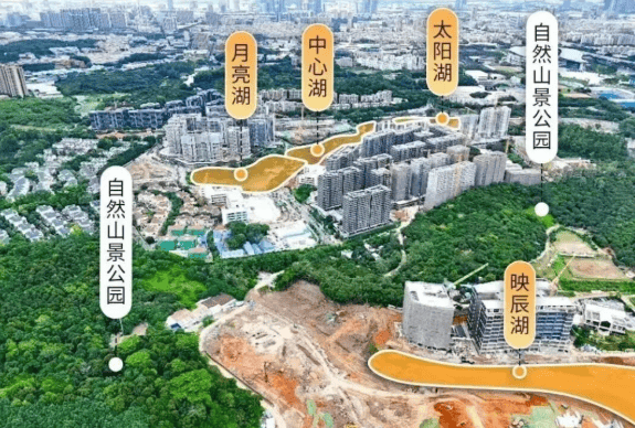 项目环抱约1.75万平方米的“映辰湖”,湖面如镜,倒映四季晨昏。不同于普通社区的景观水体,这里的湖是天然生态的一部分,与周边山林、绿地共同构成“山—湖—林—城”一体化的生态闭环。部分楼栋可一线望湖,推窗即见波光潋滟,真正实现“住在公园里”的理想生活。