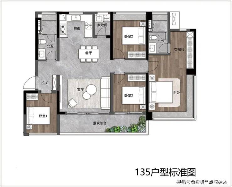 约169㎡户型,专梯入户,私享约11㎡电梯厅;景观阳台横跨三开间,约11.5米,健身、观景、品茶,都能容纳;约66㎡社交方厅,灵活布局,轻松实现社交、休闲、亲子等多重生活场景。