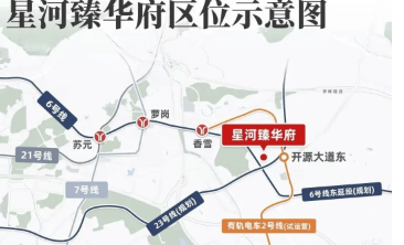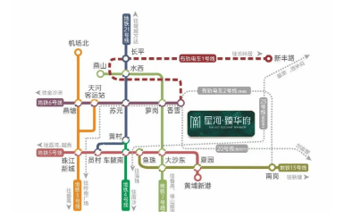 星河臻华府位于开创大道与开源大道交汇处,目前距离地铁站约 2km,公共交通需依靠公交车接驳,出行略有不便。然而,地铁 6 号线东延段的地铁口未来将在项目家门口附近,届时交通便利性将大大提升,居民可更快捷地畅达城市各处。