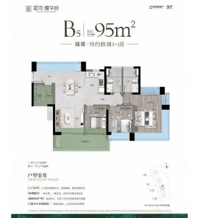 产品为建面约 85 - 125㎡的三到四房,使用率接近 100%,空间利用率高。主卧配备 270° 飘窗,不仅增加了室内采光与通风,还为居住者提供了更广阔的视野和舒适的居住体验。