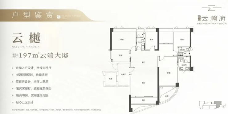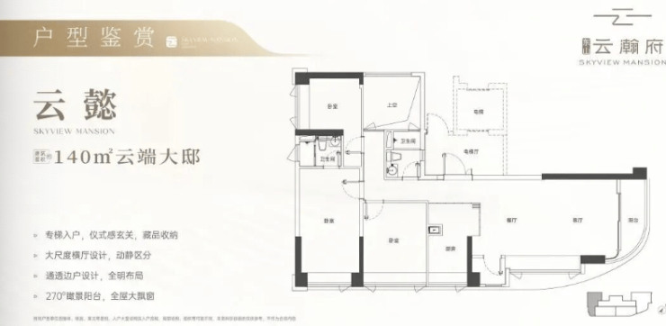 项目主力在售户型为建面约130平方米、135平方米、140平方米的三房及四房,以及建面约197平方米的更大面积户型,均针对高端改善家庭设计,空间尺度开阔,功能分区明确。项目为期房,根据预售信息,预计的交楼时间为2026年3月31日。具体交楼标准及时间以《商品房买卖合同》约定为准。