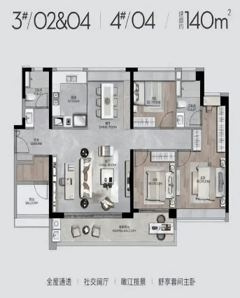 项目主打三面环幕江景的高端住宅单位,户型设计充分考虑了采光和景观视野,让每一户都能享受到最佳的观景体验。主力户型面积涵盖从刚需到改善的不同需求,满足各类家庭的居住需求。