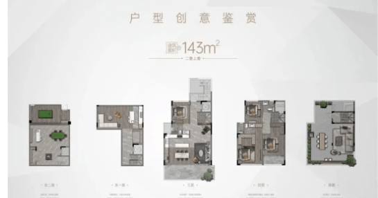 【4-6F叠院】143㎡产品涵盖二叠上叠、二叠下叠、三叠上叠、三叠中叠、三叠下叠五种类型,均为一梯一户设计,层高3.3米,空间感十足。上叠产品配备屋顶露台,可打造为私人花园、休闲区,享受空中庭院生活;下叠产品带有私家花园,推门即享绿意,适合喜欢庭院生活的家庭;中叠产品空间布局均衡,兼具舒适度与实用性,满足不同家庭的居住偏好。