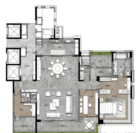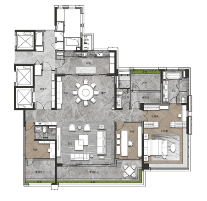 268平方米户型:旗舰级大平层,3T2户设计,配备保姆电梯,双主套互不干扰,LDKG一体化大方厅,提供极致舒适与私密性。