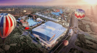 虽处湖山之间,俊怡悦景台却并未远离城市繁华。项目近邻总投资达 500 亿元的文旅城,直线距离约 8 公里,15 分钟车程即可抵达。这座占地面积约 220 万平方米的文旅城拥有八大旅游业态,配备约 10 万㎡的商业配套和高端酒店群,一站式满足家庭吃喝玩乐购的全方位需求。