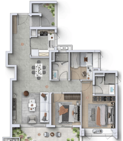 项目推出的88-168㎡二至四房户型设计灵活多样,充分考虑到了不同家庭结构对居住空间的需求。例如,126㎡和127㎡户型均采用了南向大面宽采光设计,实现了IMAX级观景视野;而88㎡和103㎡户型则以紧凑实用为主,既保证了居住舒适度,又提高了空间利用率。