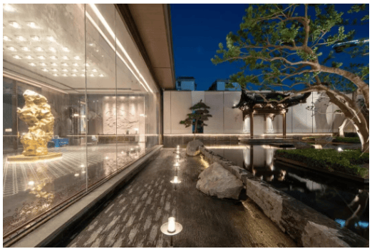 再看园林设计,项目以宋式美学为灵感,打造“四水归堂”庭院、曲径连廊、静水面景等元素。目前示范区和园林均已实景呈现,所见即所得,避免了“效果图诈骗”的风险。