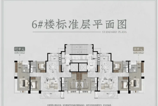168㎡四房三卫:总价370万–410万,位于1栋和6栋,定位高端改善。
