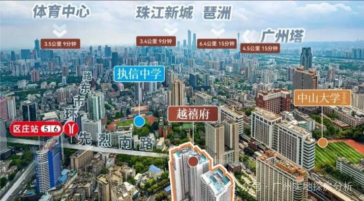越秀保隆越禧府的核心价值,首先定格在其不可复制的城芯区位,地处越秀区环市东城芯,华乐街道先烈南路23号,紧邻执信中学本部,精准占位广州老城核心与时代发展风口,既坐拥越秀区千年文脉底蕴,又享受环市东板块的成熟配套红利,真正实现“繁华与自然共生、文脉与时代相融”的理想居住体验。作为广州老城区的核心板块,环市东承载着广州的城市记忆,汇聚了行政、商业、教育、医疗等优质资源,是广州顶级的生活居住区,而保隆越禧府的落地,不仅填补了区域内高端智慧豪宅的空白,更以精工品质与创新设计,重塑环市东高端人居新标杆。