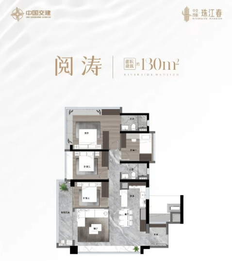 130㎡3+1 房 2 卫:改善入门级户型,全南向布局,客厅连接约 6.5 米景观阳台,直面珠江江景;主卧套房设计(带独立卫浴 + 飘窗),私密性强;灵动空间可改造为书房或儿童房,功能性完善;适合三口之家,低门槛享受 CBD 江景生活,总价 600 万级即可入手,性价比突出。