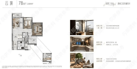 建面约78㎡「云境」:双景三房,揽阅江园双重风光,稀缺望江小户;
