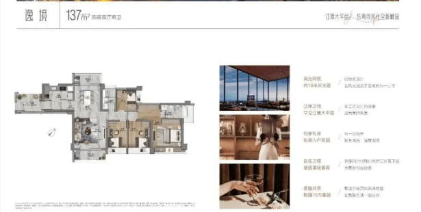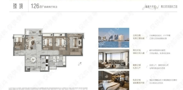 建面约126-137㎡「臻境」「逸境」:奢阔大平层,270°环幕瞰江,东南向采光优越,尽显塔尖生活格调。