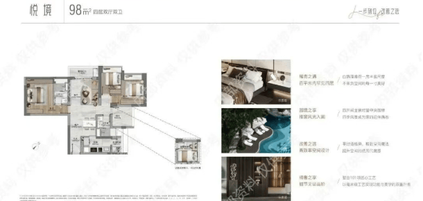 建面约98㎡「悦境」:一步到位四房,改善首选;