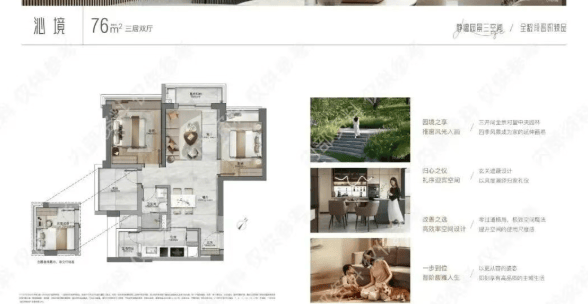建面约76㎡「沁境」:三房双厅,静谧园景,小户型也能实现全龄段居住;