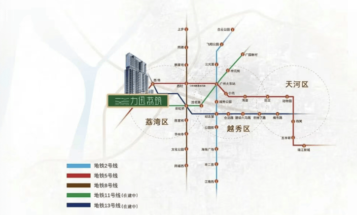 地铁,作为现代城市交通的重要组成部分,为人们的出行带来了极大的便利。力迅荔筑,下楼即达地铁 5 号线与在建中的 13 号线二期西场站。这一独特的双地铁交汇优势,让您的出行更加高效、快捷。乘坐地铁 5 号线,2 站即可到达越秀,感受这座历史文化名城的独特魅力;9 站直达珠江新城,畅享广州最繁华的商业中心带来的无限活力。未来,通过站内换乘 13 号线,更可横跨白云、荔湾、越秀、天河与黄埔等多个区域,轻松到达城市的各个角落。无论是上班、上学还是休闲娱乐,地铁都能为您提供稳定、准时的出行保障。