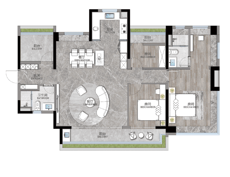 115–206㎡大平层,LDKG大方厅+100%实用率