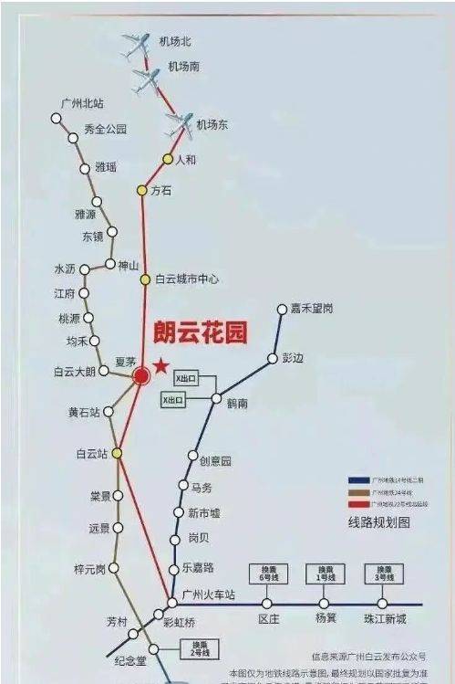 合景朗云花园位于白云区白云新城核心区域,紧邻在建的夏茅地铁站,未来将成为白云区重要的交通枢纽,预计三条地铁线路在此交汇,包括8号线北延段、22号线北延段以及规划中的24号线。项目距离地铁站约100米,步行即可到达,为居民日常通勤提供高度便利。