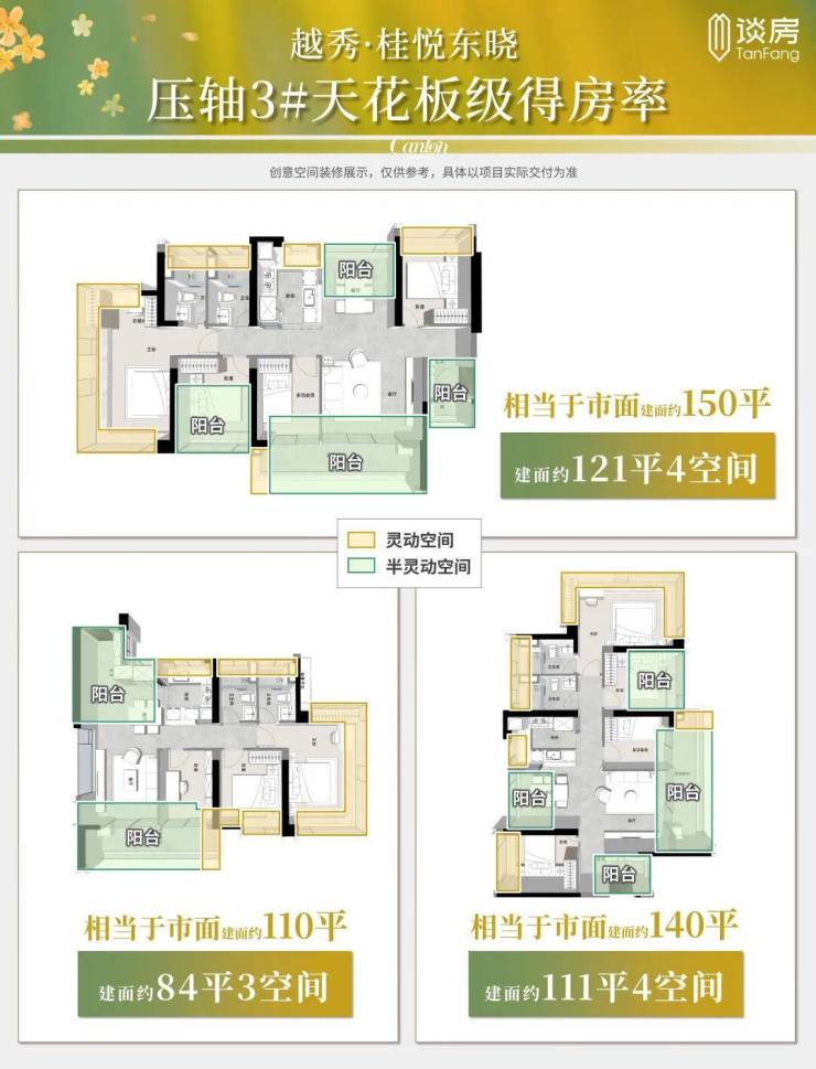 根据广州市住建局备案数据及第三方权威机构实测,越秀桂悦东晓项目总占地面积约2.2万平方米,总建筑面积约5.9万平方米,规划565户,容积率5.0,绿化率35%。项目通过新规户型设计,实现阳台占比达20%,综合使用率突破120%,远超市面同类产品(普通住宅使用率约75%-85%)。以建面约88㎡户型为例,实测套内面积达108㎡,相当于市面约110-120㎡户型的居住体验,性价比极高。