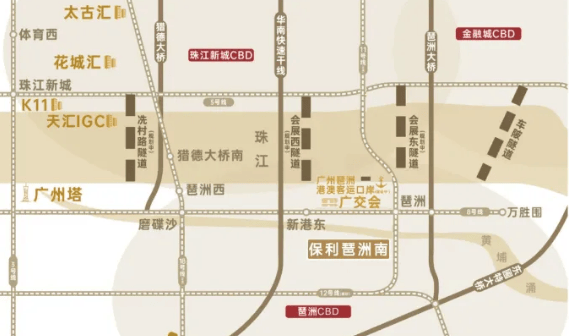 保利天奕位于琶洲南 TOD 东侧,地段优势显著。北临黄埔涌,与广交会展馆隔涌相望;南边为新滘路;西边是赤沙旧改区域;东边紧邻科韵路。项目距离广州地铁 8 号线和 11 号线的琶洲站仅 900 米,步行轻松可达。便捷的交通网络,不仅能快速畅达广州各核心区域,更紧密连接珠江新城、金融城和鱼珠等重要板块,随着区域缝合发展,未来出行与商务交流将更加便捷,尽享大湾区核心区域的发展机遇。