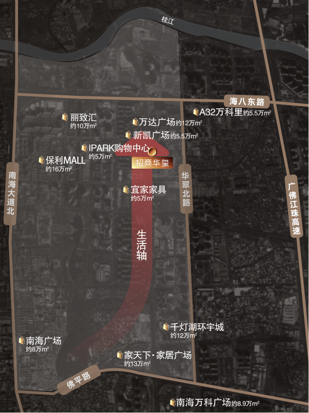 【招商华玺】坐落于佛山千灯湖核心区,地处广佛交界的黄金中轴,是广佛同城发展格局下的战略高地。项目周边地铁网络密集,地铁广佛线与佛山地铁2号线、6号线交织贯通,可快速直达广州天河、珠江新城等中心城区。主干道桂澜路、海八路、南海大道等纵横交错,形成高效便捷的城市出行体系。此外,项目周边拥有完善的公交体系及高快速路网,通达广佛两地核心商圈。千灯湖CAZ规划的实施,让这里从传统的CBD跃升为全天候活力区,24小时商务与生活并行不悖。未来随着交通设施进一步升级,【招商华玺】的区位价值将持续攀升,成为连接广州与佛山的核心门户。