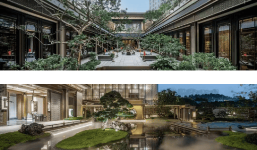 中式园林设计:打造约6.8万㎡中式园林,“礼道-见松-步水-游廊-归堂”每一平米,都是对品质生活的雕琢。