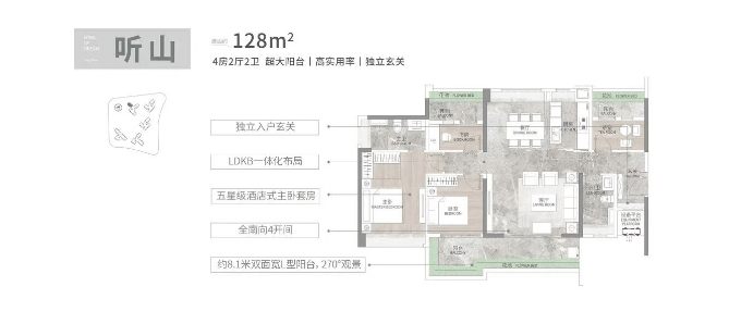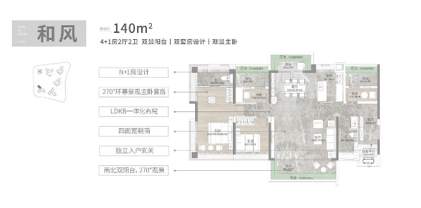 联投文津府的户型设计以实用性为主导,得房率接近100%,并且所有房间均采用全景落地窗设计,保证了充足的采光和开阔的视野。例如,建面108平的3+1房户型,四开间朝南,配有近6米的南向阳台和LDKB一体化设计的大方厅;而建面165平的4+1房大平层则配备了双主套设计和南北对流的双阳台。这些精心设计的户型,不仅满足了不同家庭结构的需求,也为居住者带来了更加舒适的居住体验。