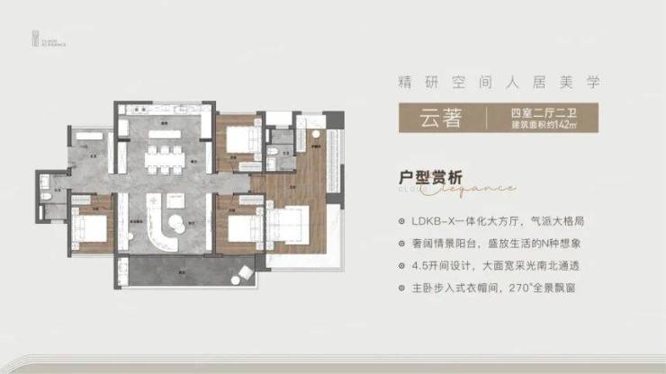 对于追求更高生活品质的改善型家庭,云筑上品还提供了105㎡四房和142㎡四房两种选择。105㎡四房总价约459万起,做到了四开间朝南,采光效果极佳。U型厨房操作面长达5.2米,让烹饪成为一种享受。多功能房设计灵活,既可作为书房,也可作为儿童活动室或客房,满足二孩家庭或多代同堂的居住需求。142㎡四房总价约603.5万起,则是真正的豪宅体验。7.8米长的超大阳台连通客厅和次卧,气势磅礴,视野无敌。主卧套房面积超过25㎡,带独立衣帽间和卫浴,尊贵感十足。南北对流的设计,让室内时刻保持着清新的空气和适宜的温度。