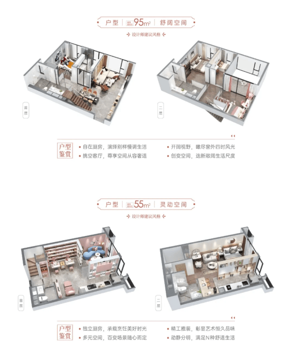 项目的层高是其一大亮点。部分楼栋层高达到5米,其余也在4.5米左右。这样的超高层高,为空间的垂直利用提供了无限可能。LOFT结构使得一层变两层,实际使用面积远超建筑面积。您可以将下层设计为客厅、餐厅、厨房等公共活动区域,上层则作为卧室、书房等私密休息空间。动静分区明确,互不干扰,既保证了生活的隐私性,又增加了空间的趣味性。