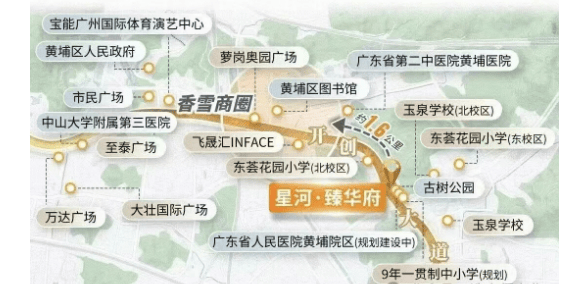虽然距离最近的地铁站香雪站约2.1公里,乘坐6号线可以快速到达天河区,但考虑到步行距离较远,日常出行主要依赖于自驾或公交接驳。不过,随着未来23号线的规划建设,一旦落实将大大提升项目的交通便利性。自驾方面,项目门口就是开创大道,周边还有开源大道、开泰大道等主干道,使得驾车出行非常便捷。