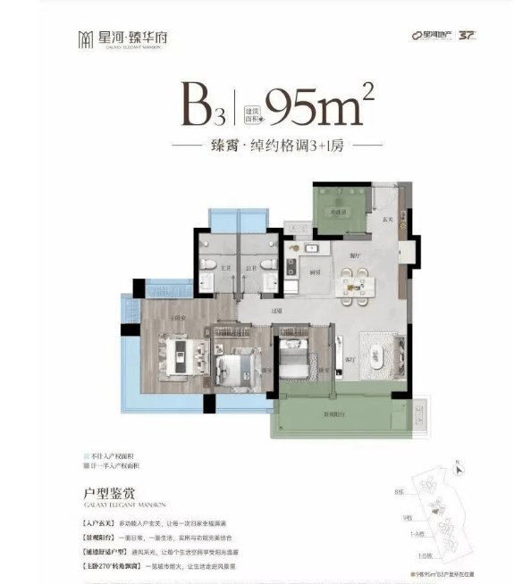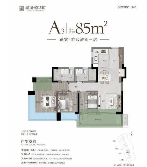 星河臻华府位于广州市科学城板块,坐落在开创大道与开源大道交汇处,是一个大型综合性住宅项目。该项目由一期10栋和二期7栋组成,总共2800户,总层高为32-33层,容积率为4.4,绿化率为30%,车位比为1:1.25。首推产品包括85㎡、95㎡、105㎡、125㎡的三至四房户型,所有户型使用率均在100%左右。