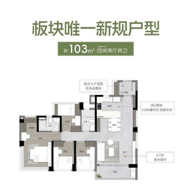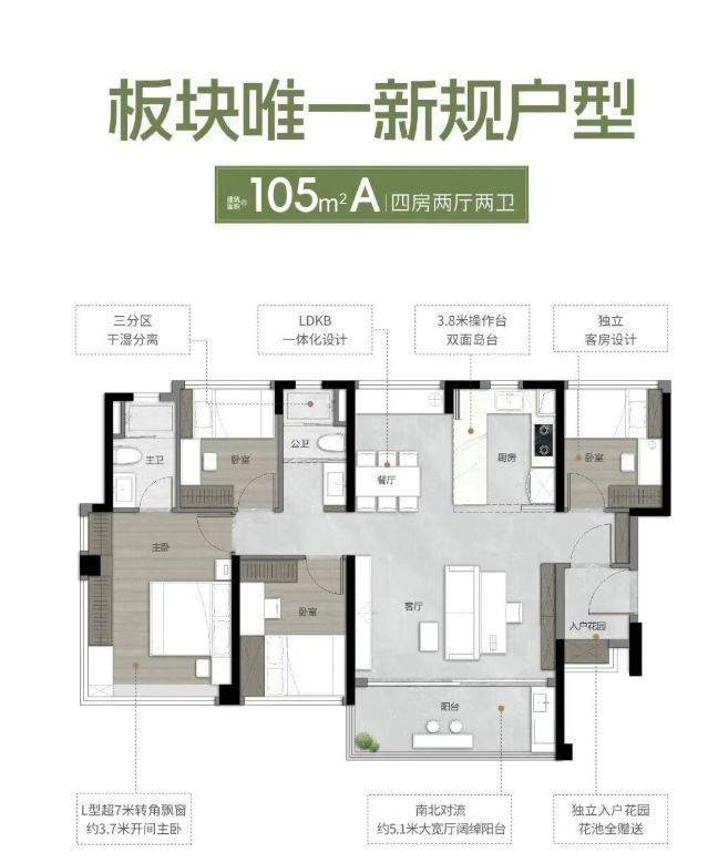 户型设计亮点满满,得房率超 120% ,最高约 138% 。主推建面约 77 - 135㎡ 三到四房,14 种变异户型,满足不同需求。部分阳台开间超 7 米,空间宽敞。装修品质极高,99 项精选定制板材,全屋隐藏式中央空调交付,配备方太厨房三件套、智能马桶等,还有 120 处魔鬼精工细节,提升居家质感。