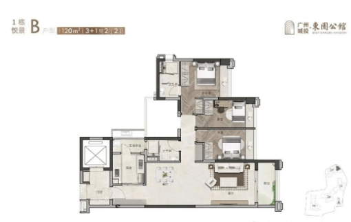 文化厚重感:项目名称“东园公馆”取自旁边的百年历史名片东园,曾是清末广东水师提督李准精心打造的岭南园林别墅,滨临珠江。