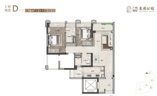 96㎡2+1房:灵活空间设计,满足不同需求。