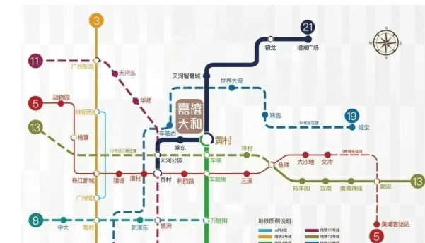 嘉禧天和的交通优势显著,项目紧邻地铁4号线和21号线的交汇站黄村站,步行仅需3分钟即可到达。通过地铁,2站可达天河智慧城,3站至金融城,4站到琶洲,5站至科学城,7站直达珠江新城。自驾方面,项目紧邻大观南路和车陂路,几分钟即可接入广元快速、中山大道和黄埔大道,30分钟内可速达广州各主城区。此外,项目门口设有公交车站,多条公交线路途径,为居民提供便捷的出行选择。