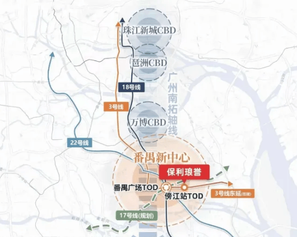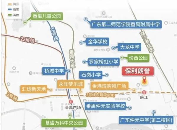 保利琅誉位于番禺广场板块,距离地铁3号线东延段傍江站仅约500米,步行即可到达。这意味着,从这里出发,您只需一站就能抵达番禺广场站,在那里您可以轻松换乘多条地铁线路,包括18号线、22号线等,快速通达广州各大核心区域。不仅如此,周边还有广外附小等优质教育资源,以及丰富的商业设施如龙湖天街,满足您的日常生活需求。