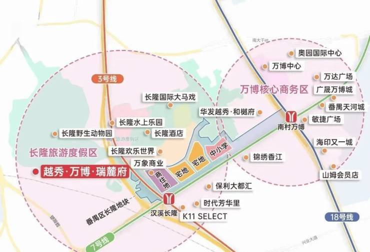 项目地处万博CBD扩容辐射带,虽非直接地铁上盖,但距离7号线钟村站约1.2公里,步行15分钟或骑行5分钟即可抵达,通勤便利性良好。搭乘7号线,2站直达万博核心区,3站到广州南站,6站抵达珠江新城,高效连接城市主脉。自驾出行更为便捷——家门口钟顺路直连汉溪大道与南大干线,10分钟内可达万博CBD,30分钟覆盖珠江新城,40分钟通达琶洲、大学城等重点片区。依托万博作为广州南部城市副中心的持续升级,叠加长隆文旅IP与飘峰山生态资源,项目形成“商业+生态+交通”三重价值锚点,成为承接核心区外溢改善需求的理想落点。