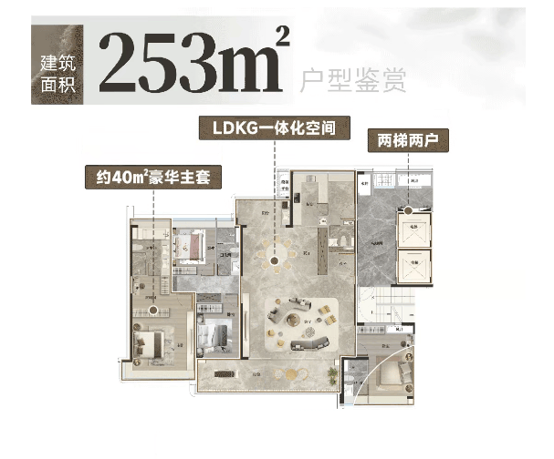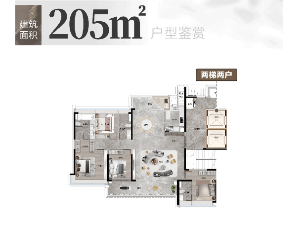 项目主力产品为128-253㎡三至五房,均为南向纯板式设计,南北通透,实用率高。128㎡三房总价约614万起,三开间朝南,客厅连通阳台,适合年轻改善家庭;140㎡四房分小高层与高定版,前者带7.5米宽阳台,后者布局紧凑实用,满足二孩家庭需求;171㎡五房采用8层小高层+专梯入户,私密性强,部分单位直望长隆景观;205㎡环幕四房配备近9米双阳台与双主卧套房,实现长辈独立生活动线;253㎡大平层则以阔绰客厅、步入式衣帽间及全景视野,定义终极改善尺度。所有户型均注重功能与美学平衡,契合多代同堂或高阶自住需求。