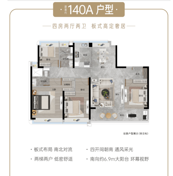 在售户型品鉴:128-253㎡全南向板楼,专梯入户+巨幕阳台