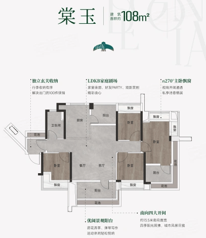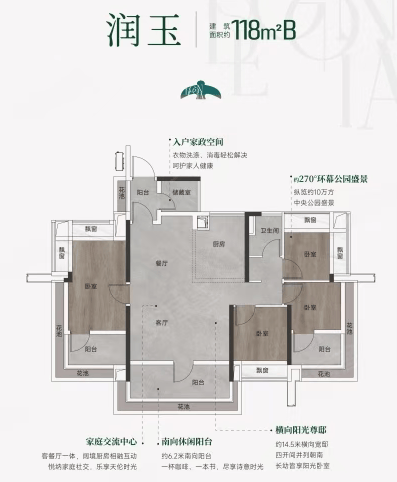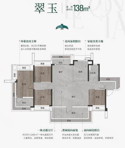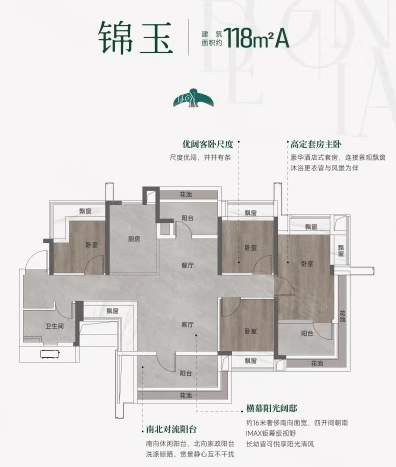 项目主打四房户型,具体面积分别为108平方米、118平方米、138平方米,以及四套顶层复式户型,每套面积约200平方米。这些户型设计注重实用性和舒适性,使用率高达130%,阳台占比上限可达20%(可申报至25%),使得居住空间更加宽敞明亮。