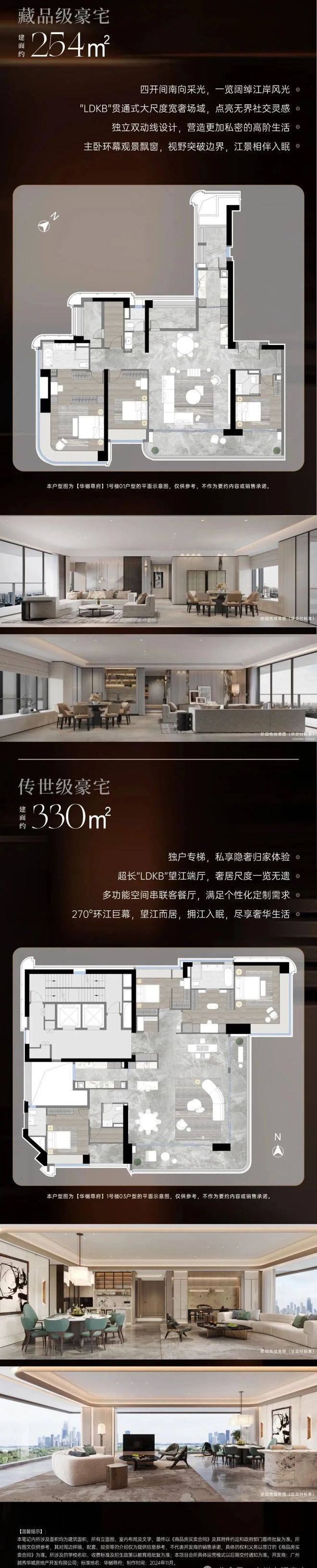 琶洲·樾 | 华樾是越秀地产和华发股份两大国企联合打造的高端住宅项目,位于广州琶洲西区核心位置,这里是数字经济和人工智能产业集聚地。整个项目占地大约2.37万平方米,总建筑面积接近5万平方米,容积率控制在2.08,绿化率达到35%。只规划了一栋住宅楼,总共96户,全是大平层产品,户均面积超过280平方米。这种小体量、纯改善的规划方式,在广州顶豪市场里相当少见,居住私密性和圈层纯粹度都很高。
